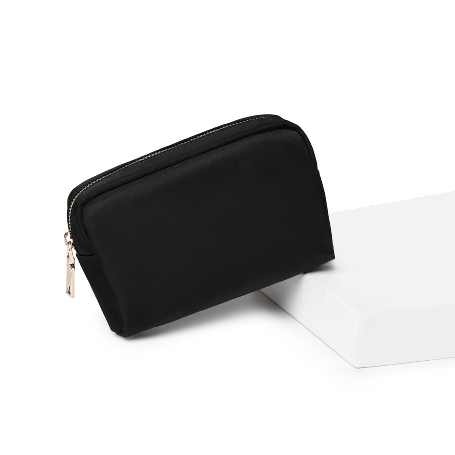 - 【Suitable capacity】The size of this bag is perfect for your daily makeup, including mascara, foundation, blush, eyebrow pencil, concealer, rectangular eyeshadow palette, eyeliner, lipstick. The material is waterproof and wear-resistant, black simple and fashionable. The zipper will not be opened too large so that things do not spill out.