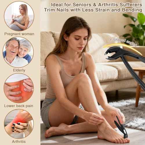Toenail Clippers for Thick Toenails 6Pcs, Long Handle Nail Clippers for Seniors Angled Head with Catcher, 45¡Æ Slanted Toe Nail Clippers Curved Blade, Ergonomic Wide Jaw Opening Heavy Duty