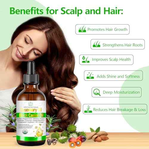 Organic Rosemary Oil for Hair Growth, Rosemary Oils with Castor ? USDA Certified Cold Pressed Blend Hair Oil for Thicker, Fuller Hair, Soothe Itchy Scalp & Repair Damaged Hair ? 4 fl oz