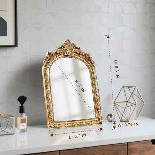 YUSONG Vintage Makeup Desk Mirror - 7" Gold Antique Mirror for Tabletop Resin Frame Decorative Wall Art for Living Room, Bedroom Decor, Vanity Table