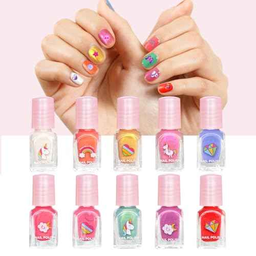 MU Unicorn Fantasy Kids Nail Polish Kit - 10 Water Based Polish Colors and Press On Nails, Quick Dry Peel Off Formula, Magical Unicorn Nail Polish Set for Girls, Birthday Party Gift Set