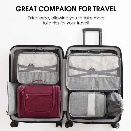 WANDF Large Hanging Toiletry Bag Travel Cosmetic Makeup Organizer Water-Resistant Shower Bathroom Bag for Women and Men (Red)