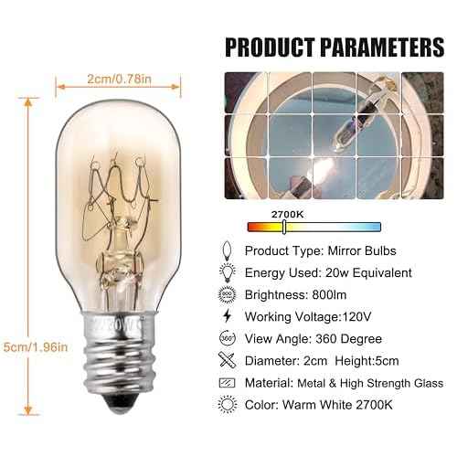20W, 120V Incandescent Bulb Replacement, Suitable for Conair RP34B Illuminated Makeup Mirror, E12 Candle Holder Base, 2700K (20W 120V Bulb*2)