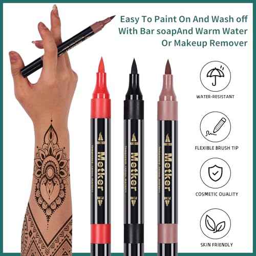 Temporary Tattoo Markers for Skin | Dual-End 16-Count Body Markers + 77 Large Tattoo Stencils | Temporary tattoos for Adults and Kids | Flexible Brush Tip, Bright colors, Skin-Safe*, Cosmetic-Grade
