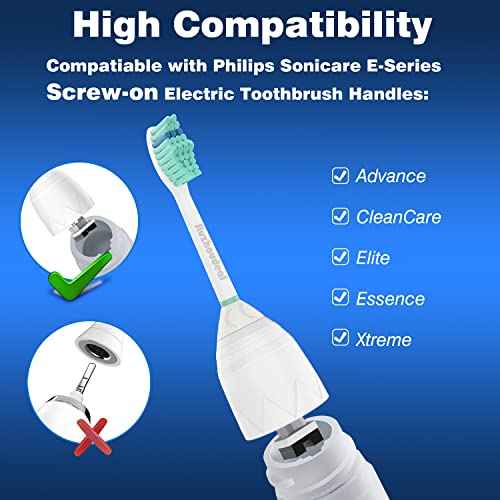 Toothbrush Replacement Heads for Philips Sonicare E-Series, Essence, Elite, Advance, CleanCare Screw-on Electric Toothbrush Heads HX7022/66, 6 Pack