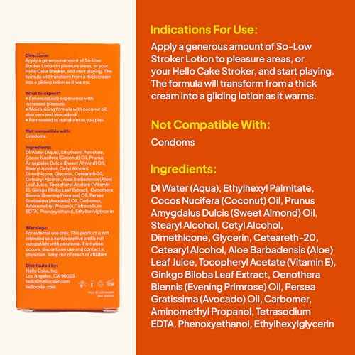 Hello Cake So-Low Stroker Lotion - Below the Belt Solo Cream for Men, Natural Moisturizing Ingredients Coconut Oil, Avocado Oil, Aloe Vera, 1.7 fl oz