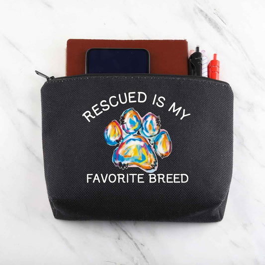 MNIGIU Rescue Dog Lover Gift - Rescued Is My Favorite Breed Makeup Zipper Bag (Black)