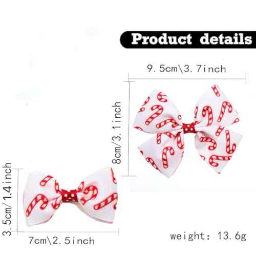Christmas Candy Cane Print Ribbon Hair Bow Clips Barrettes Alligator Hairpins for Girls, Teens, Toddlers, Kids, Women Candy Cane Decorations Accessories Xmas Holiday Gift (O)
