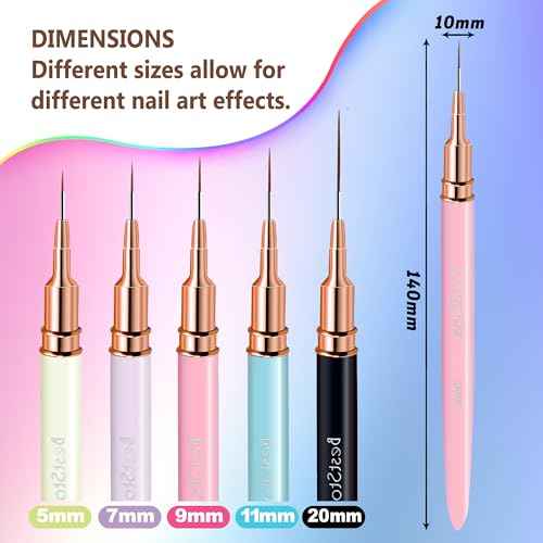 Nail Art Liner Brushes, 5Pcs Professional Gel Polish Painting Art Design Pen Set for Long Lines, Thin Details, Fine Drawing Sizes 5/7/9/11/20mm Nail Art Design Gift for Women(Multicolor)
