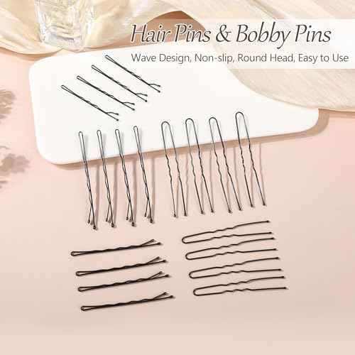 250PCS Hair Pins Bobby Pin Set, Assorted Sizes Wave Bobby Pins 2inch 2.36inch 2.75inch for All Hair Types + 2 Sizes U Shaped Hair Pins for Buns 2.36inch 2.75inch, Black for Girls Women