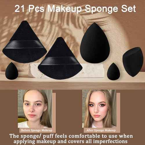 21 pcs Black Beauty Blender Makeup Sponge Bulk:Blender Sponges 21 Pcs for Liquid, Cream, and Powder, Multi-colored Pink make up sponges for foundation