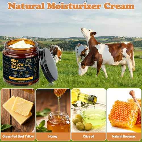 Beef Tallow for Skin, Natural Tallow Balm with Raw Honey and Beeswax for Face, Deep Nourishing Moisturizers, Grass-Fed Beef Tallow Cream for All Skin Types