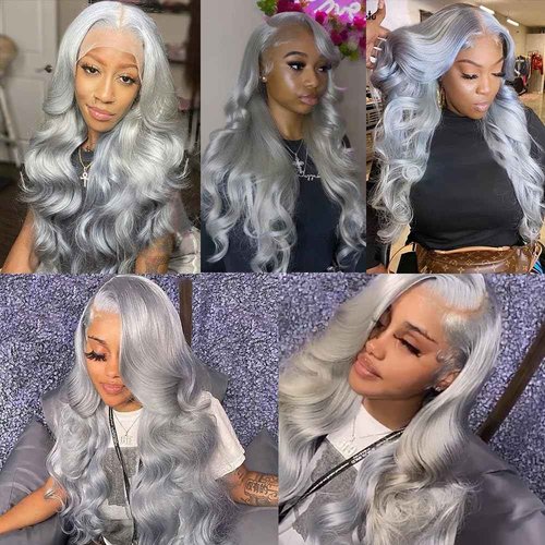 JHXAYW Grey Lace Front Wig Synthetic Pre Plucked Glueless Lace Wigs Synthetic Ready To Wear Wig Long Natural Curly Wig for Black Women