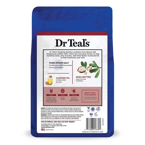 Dr Teal's Pure Epsom Magnesium Salt Soak, Shea Butter & Almond, 3 lbs (Pack of 4)