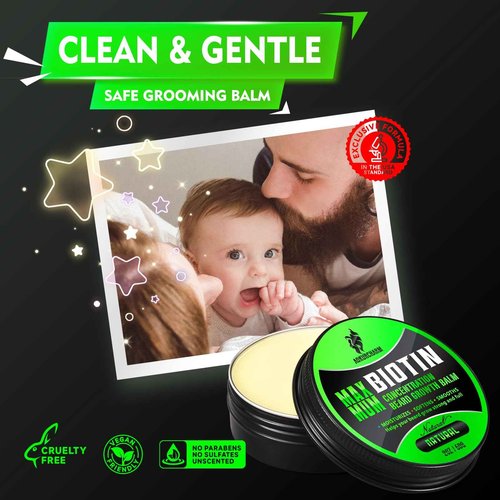 Biotin Beard Balm for Men – Unscented, Fast-Absorbing Beard Softener & Growth Balm with Castor, Shea & Jojoba – Conditions, Styles & Thickens Coarse or Patchy Facial Hair – Idea Gift for Him – 2 OZ