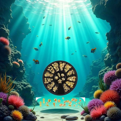 12 Styles Golds Nail Art Metal Studs Metallic 3D Pieces Rivet Palm Tree Turtles Marine Life Charms for Summer Beach Manicure DIY Acrylic Nails Design Supply Nail Art and Polish (Gold Ocean Studs)
