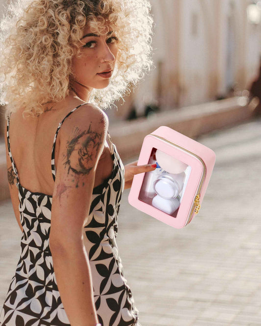 JRQCSJY Small Clear Makeup Bag for Purse, Cute Mini Clear Cosmetic Bag Case Organizer, TSA Approved Square Small Makeup Case Pouch with Zipper, Car Travel Purse Essentials for Women (Pink, S)