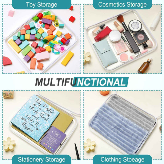 Hoolerry 4 Pcs Hard Clear Zipper Case Makeup Bags Plastic Pencil Pouch Transparent Storage Box Containers for Cosmetics, Snacks, Building Blocks, Puzzles(White,13.8 x 11.8 x 2 in)