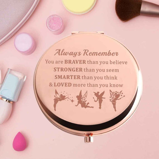 KEYCHIN Fairy Tale Pocket Mirror Fairy Pixie Cartoon Fans Gifts You are Braver Stronger Smarter Than You Think Compact Makeup Mirror for Women Girls Teenagers (Fairy Tale Mirror-RG)