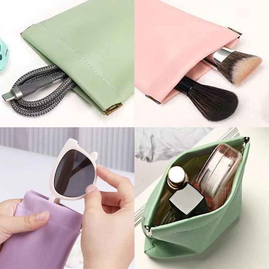 6 Pcs Small Makeup Bag for Purse, Snap Closure Organizer Pouch, Portable No Zipper Self-Closing Pouches for Travel Storage Bag Mini Pu Leather Pouches For Cosmetics Headphones Jewelry (Mix colors)