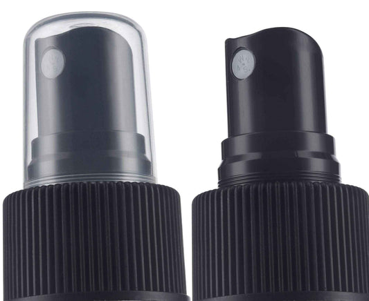 JUVITUS 2 oz Green Glass Boston Round Bottle with Black Fine Mist Spray (12 Pack) + Funnel