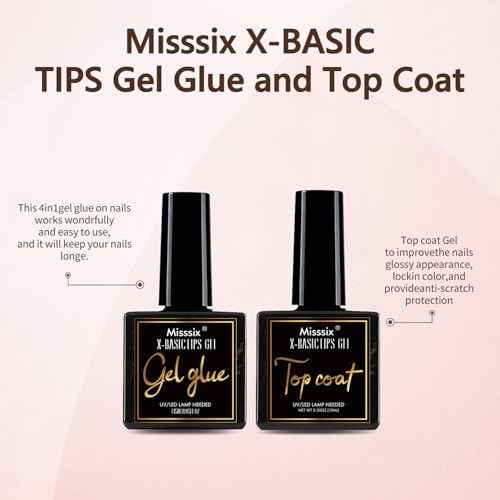 Misssix XBASICTIPS French Tip Press On Nails, 600 Pcs Short Square French Gel Nail Tips, 20 Colors Fake Nails Starter Kit with U V Lamp, Top Coat and Gel Glue for Nail Art DIY 15 Sizes