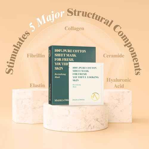 Madeca DERMA Revitalizing Sheet Mask 10pcs (100% Pure Cotton Sheets) with Centella Asiatica, Hyaluronic Acid, and Niacinamide ? Korean Skincare for Hydration & Skin Brightening for All Skin Types