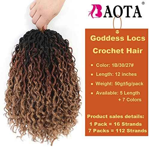 Goddess Locs Crochet Hair 7 Packs Crochet Hair for Black Women Ombre Pre-looped Faux Locs With Curly Ends Synthetic Hair Extension 12 Inch (1B/30/27#)