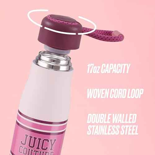 Juicy Couture Luxe Loop Varsity Logo 17oz Water Bottle with Woven Cord Handle, Pink