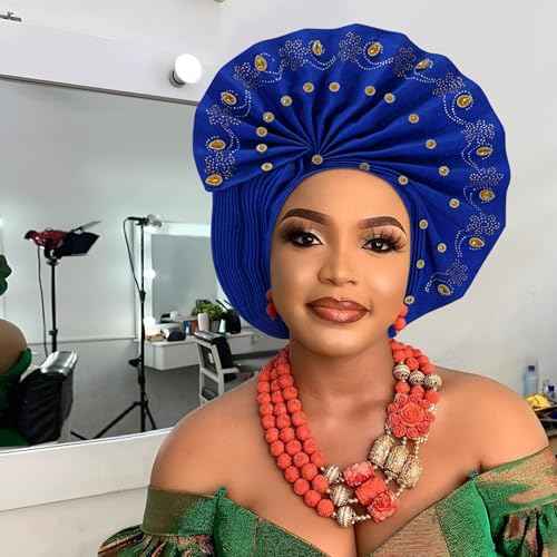 Nigerian beaded headwear Exquisite handmade African fan-shaped women's headscarf,suitable for weddings and special occasions