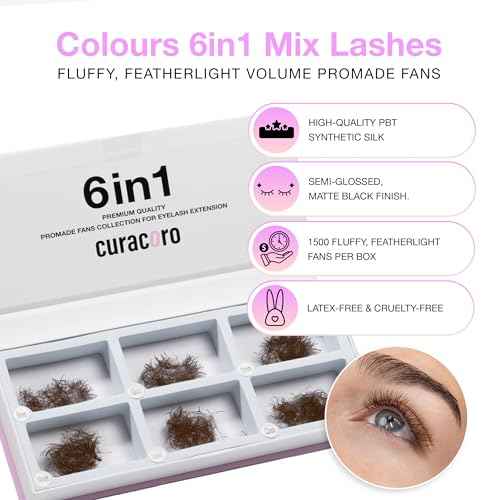 Curacoro Colored Promade Mix 1500 Fans | 5D Handmade Volume Eyelashes | CC Curl | 9-14mm Mixed Length | Long Lasting | Easy Application (Dark Brown, 5D CC 9-14mm)