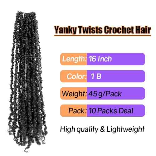 16 Inch 10 Packs Yanky Twist Crochet Hair Pre-twisted Natural Black Kinky Mini Spring Twist Plus Small Curly Senegalese Twist Braids (1B)