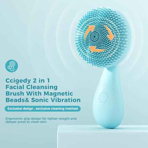 2 in 1 Facial Cleansing Brush, Rotating Magnetic Beads & Massage Cleaning Electric Face Scrubber, Waterproof and Rechargeable Exfoliating Face Scrubber Brush