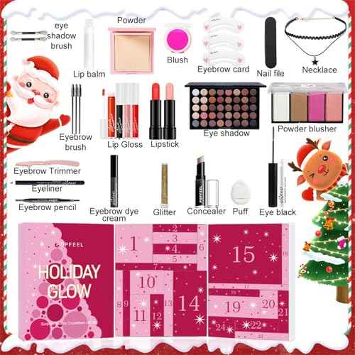 Makeup Advent Calendar 2025, 24 Days Christmas Gifts forTeenage Girls Women All in One Makeup Kit Surprise Gift Christmas Countdown Calendar Gifts with Eyeshadow Palette Lipstick Foundation Eyebrow