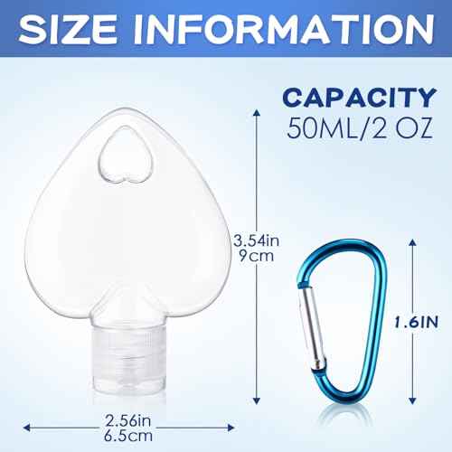 100 Pcs Traveling Bottles with Keychain 2oz Clear Keychain Bottle Plastic Empty Refillable Liquid Packing Container Squeeze Plastic with Lid for Liquid Cream (Heart)