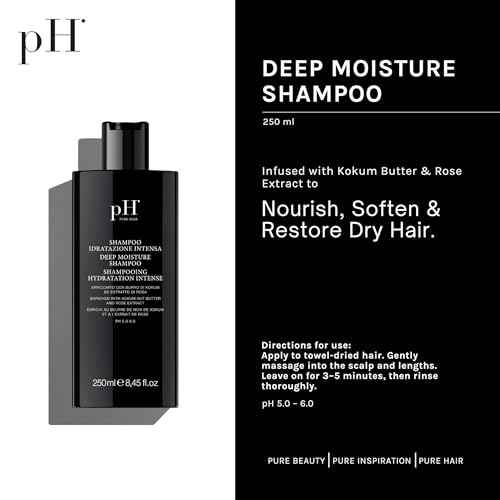 pH PURE HAIR Deep Moisture Shampoo - Sulfate-Free, Hydrating pH Balanced Shampoo for Dry, Damaged & Color-Treated Hair with Kokum Butter & Rose Extract - 8.45 oz