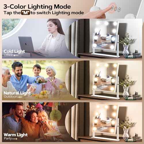 B Beauty Planet Hollywood Vanity Mirror with Lights, 3 Colors Light up Mirror for Makeup, Smart Touch Control, Brightness Adjustable, 360¡ÆRotation Detachable 40X Magnification Mirror (14¡°L x 12¡°W)