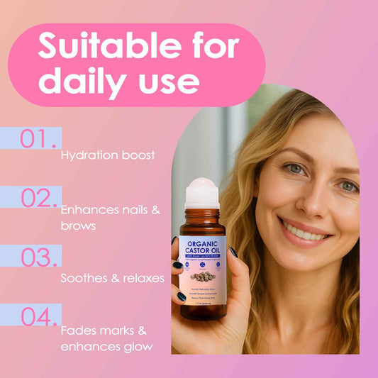 tuyapio Organic Golden Castor Oil Roll-On with Rose Quartz Roller, Cold-Pressed Pure Organic Castor Oil Roller Ball for Hair Growth, Eyelashes, Eyebrows & Skin, 1.7 fl oz (2)