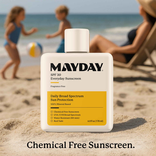 MAYDAY SPF 30 Everyday Sunscreen – Chemical-Free, Fragrance-Free, Water-Resistant Broad Spectrum Protection for Face & Body – Suitable for All Skin Types – 6 oz (178ml)
