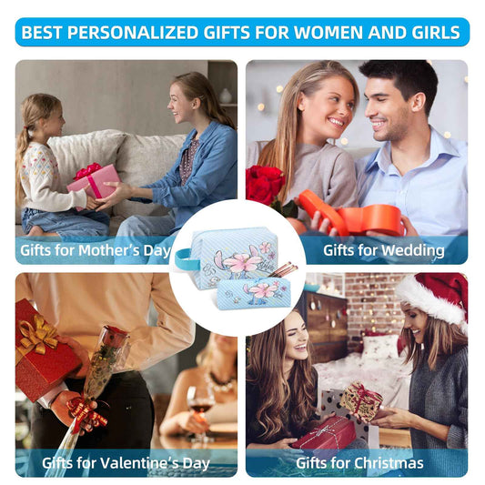 MOBRWUVS Travel Cosmetic Bag, Large Capacity Cartoon Cosmetic Pouch Makeup Bag with Zipper, Travel Toiletry Bag Makeup Accessories Organizer, The Best Gift for Women (Blue)