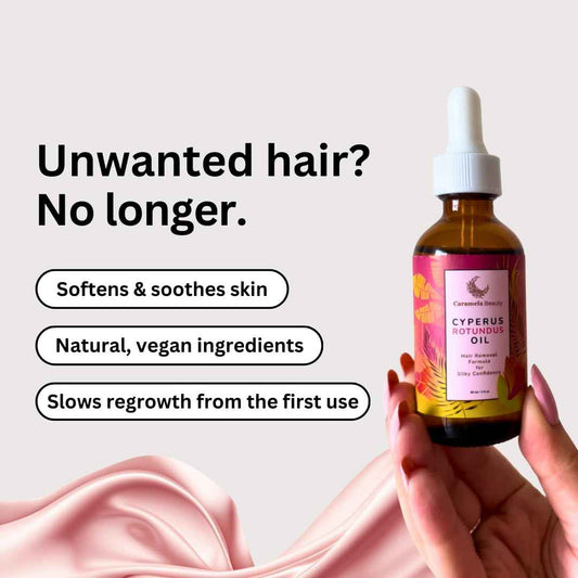 Caramela Beauty Cyperus Rotundus Oil - 60ml Natural Cyperus Rotundus Oil For Hair Removal, Moisturizing & Soothing Cyperus Oil For Reducing Body Hair Growth, Hair Removal Oil Ideal for All Skin Types