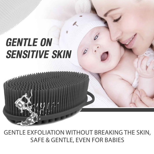 Avilana Silver-Infused Green and Dark Gray Silicone Body Scrubber Bundle - Earthy and Sleek Dual-Tone Set