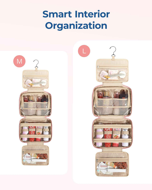 BAGSMART HangingToiletry Bag for Women, Puffy Travel Toiletry Bag with Jewelry Organizer, Waterproof Cosmetic Makeup Bag Compartment, Toiletries Kit Set for Traveling, Accessories, Essentials (M)