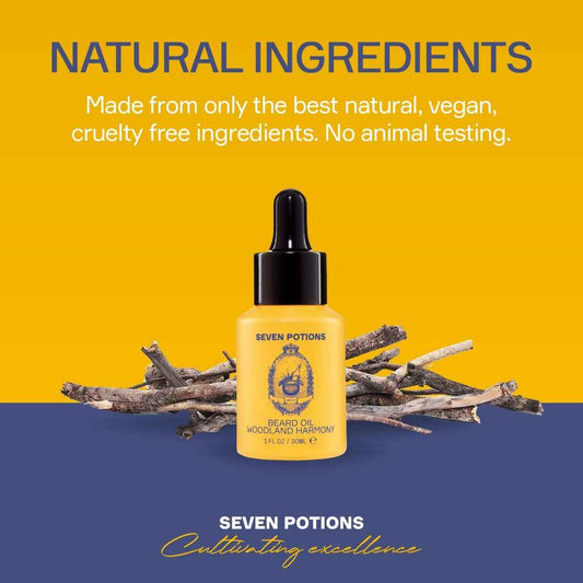 SEVEN POTIONS Natural Beard Oil for Men 1 FL OZ / 30ml — Sweet & Woody Beard Softener & Conditioner — Vegan Conditioning Oil That Helps Prevent Itch & Dandruff (Woodland Harmony)