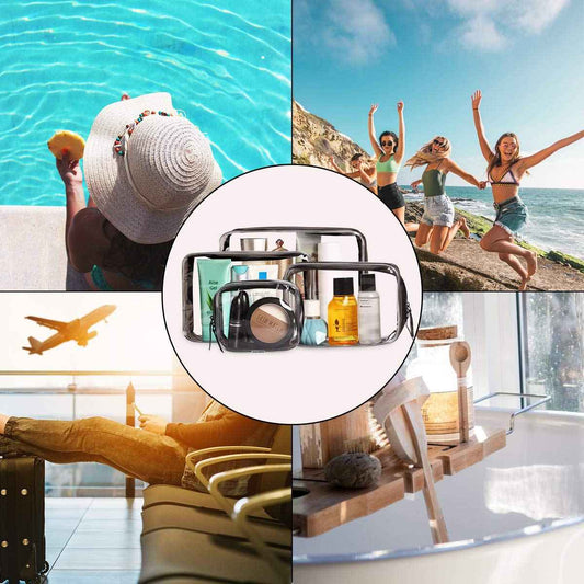 Clear Black Makeup Bags, 4pcs Cosmetic Makeup Bags Set TSA Approved Transparent Travel Toiletry Bag Waterproof Leakproof Carry On Airport Airline Cosmetic Organizer Pouch with Zipper for Women Men
