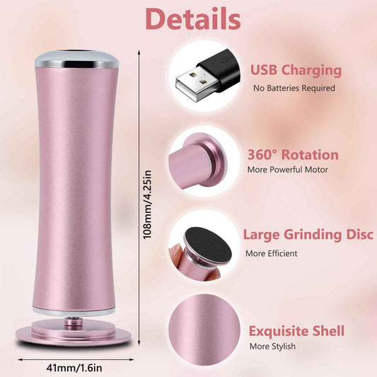 Electric Foot Callus File, Adjustable Speed Foot Grinder with 60pcs Reusable Sandpapers, Portable Foot Care Tool for Men & Women, Ideal for Home or Professional Pedicure Use (Pink)