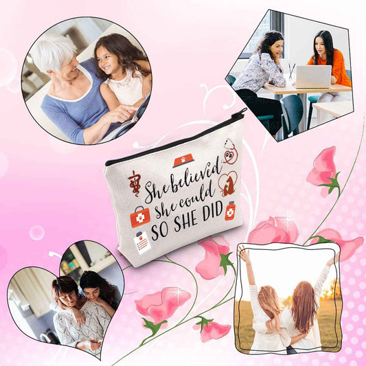 TSOTMO Vet Tech Gift Veterinary Inspirational Gift She Believed She Could So She Did Vet Tech Zipper Pouch Makeup Bag (She believed vet)