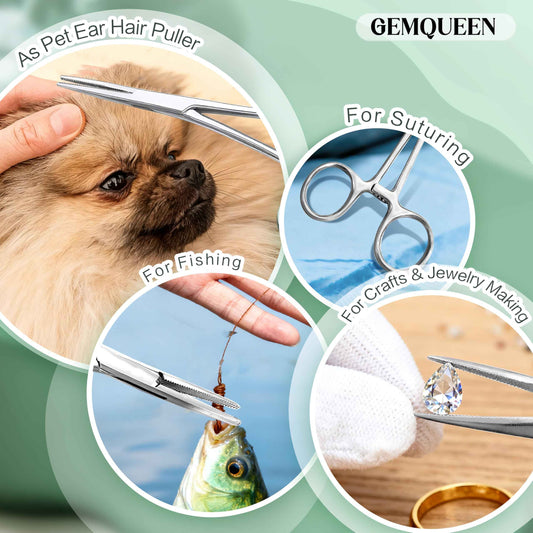 GEMQUEEN Piercing Taper Pliers Ball Grabber Tool for Changing Jewelry - Curved and Straight Forceps Stainless Steel Flat Back Earrings Insertion Tool Threadless Body Piercing Kit for Ear Nose Lip 8pcs