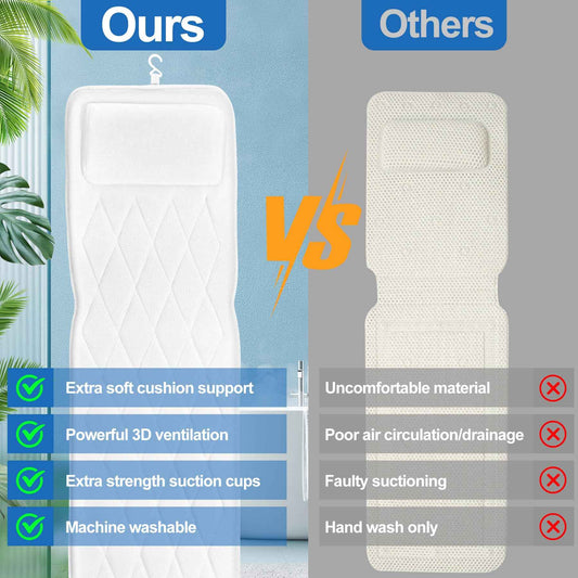 Chsuiwe Full Body Bath Pillow for Bathtub, Thick Bath Pillow for Tub with Non-Slip Suction Cups, Bathtub Cushion with Pillow, Luxury Tub Pillow for Bath, Headrest Neck and Back Support, 5D Air Mesh