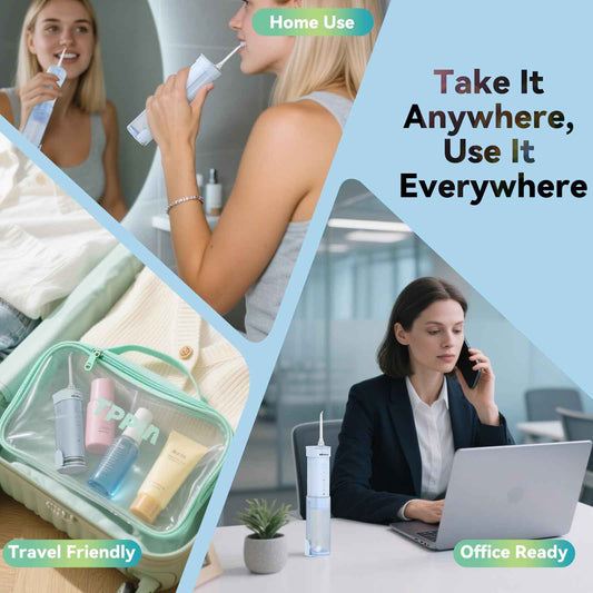 WellLeo Mini Water Flosser for Teeth,Travel Dental Flosser Picks, Portable Oral Irrigator with Telescopic Water Tank, 5 Modes IPX7 Waterproof Tooth Flosser for Brace, Sensitive Teeth, with Storage Bag